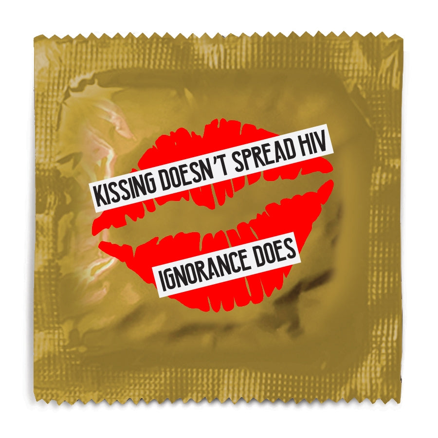 Spread HIV awareness with our 'Kissing Doesn't Spread HIV Ignorance Does' Custom Condom Foils.